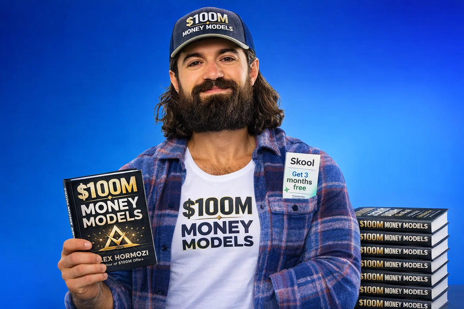 Established business owners: Buy 200 books for $6,000. Premium playbooks, bonus workshops, and access to an AI trained on Hormozi's consulting notes. The 200 books were donated to the founders who needed them.
