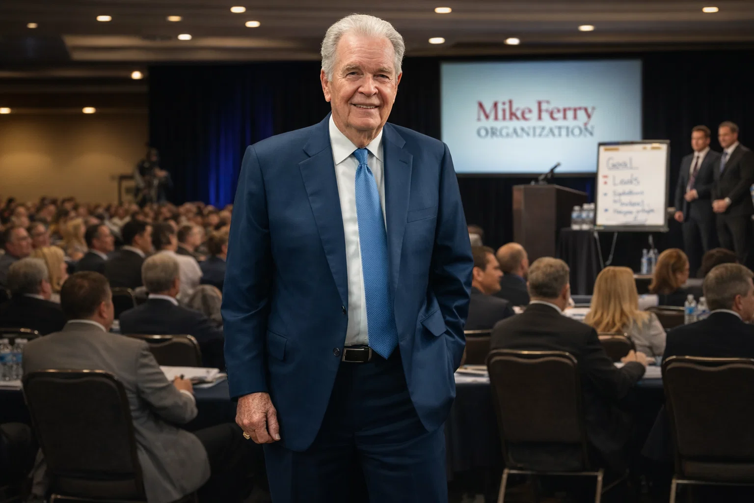 At work: Mike Ferry's machine. Strategic authority built on content, social proof, testimonials, cold calls, live events, and deliberate positioning. Engineered authority.