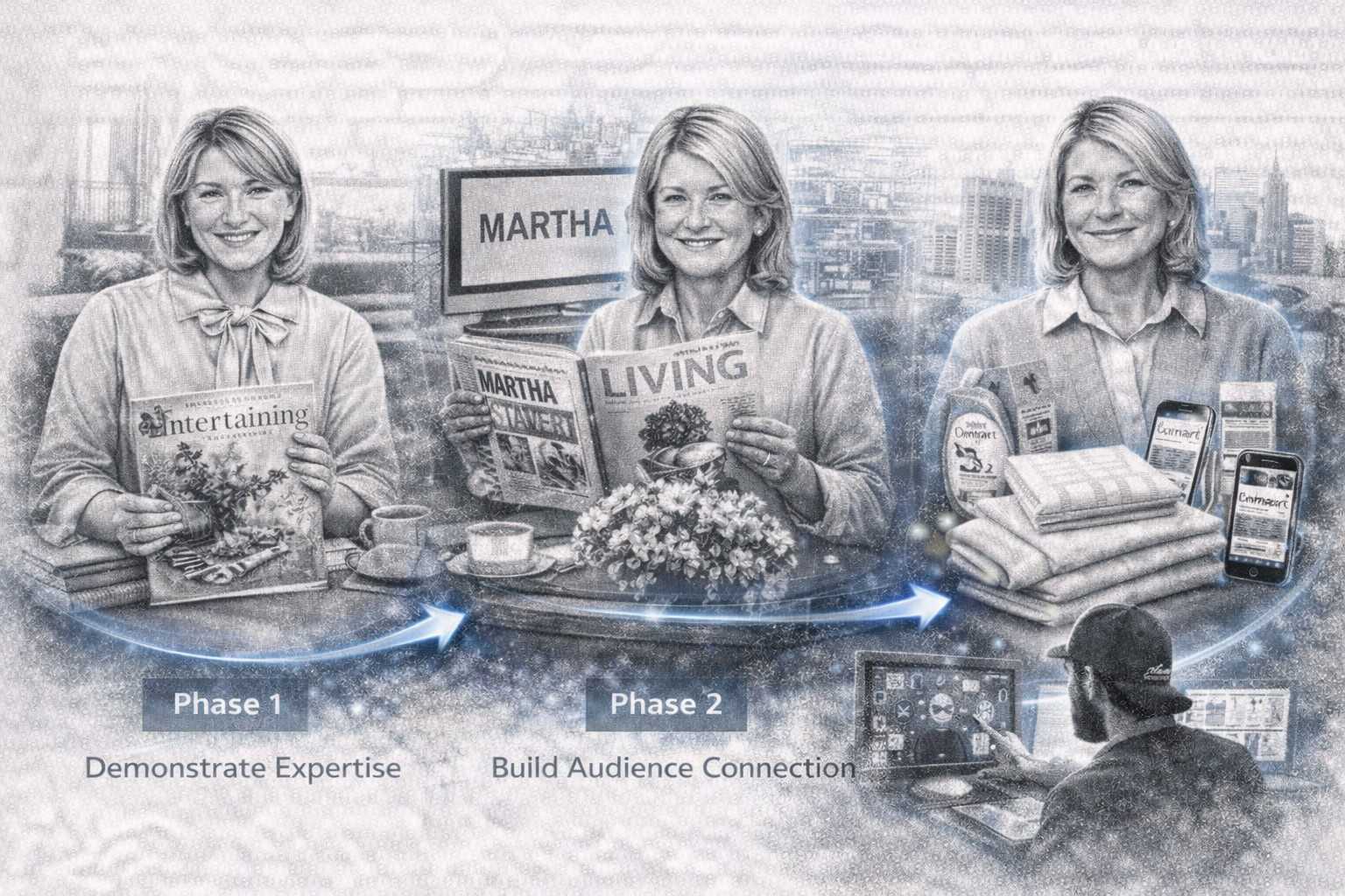 That is the architecture Martha pioneered. It still works. It is the same principle behind how brand deals work for creators building multiple revenue streams on a single trust foundation.