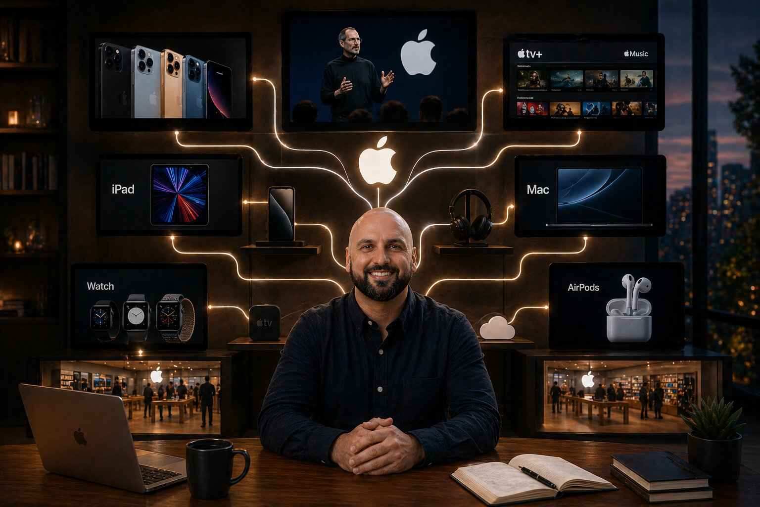 Apple is the proof that omnipresence with a coherent identity scales to planetary size. The ecosystem spans hardware, software, services, retail, and entertainment. iPhone, iPad, Mac, Apple Watch, AirPods, Apple TV+, Apple Music, iCloud, the App Store, Apple retail. Every product connects to the others. Every touchpoint, from the unboxing to the chime to the typography, carries one identity.