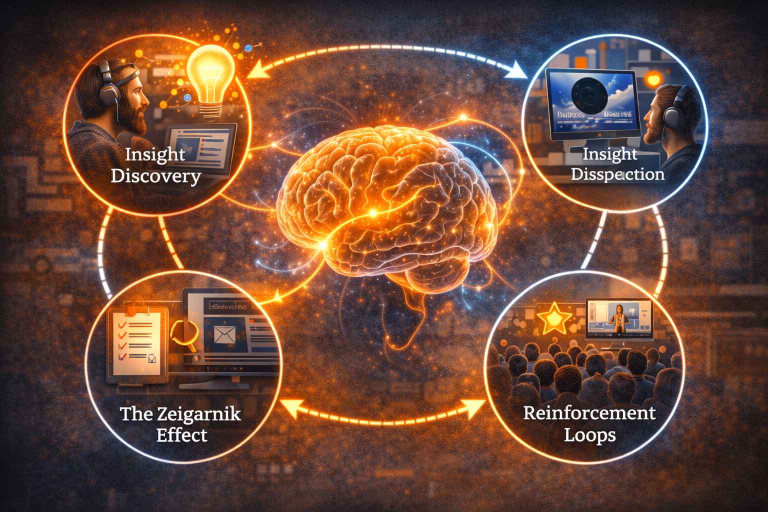 Dopamine is released when someone discovers a new insight. The Zeigarnik effect keeps the brain engaged with unresolved information. Both create biological incentives to keep watching.